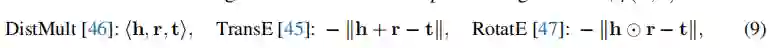 链接预测(LinkPred)。具体地说,为了执行链接预测任务,作者从输入KG中得到一个边三联体的子集。对于任务头部,作者采用KG表示学习框架,它将每个实体节点(h或t)和关系(r)映射到一个向量,,并定义了一个评分函数来建模正/负三联体样本。具体地说,作者让其中{}是来自编码器的上下文化节点向量,而是可学习的关系嵌入。考虑一个KG三重评分函数,如
