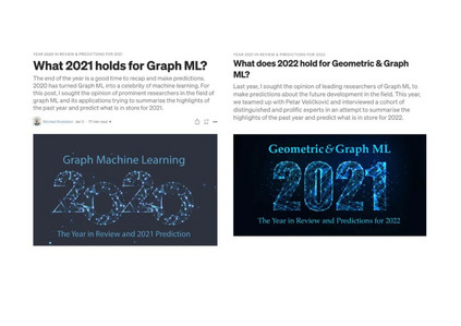 **为复杂系统建模不仅需要图。**2021 年的诺贝尔物理学奖授予 Giorgio Parisi,以表彰他对复杂系统的研究。虽然,这样的系统通常可以被基本地抽象为图。但我们有时必须考虑非成对关系和动态行为等更复杂的结构。2021 年的多项工作讨论了动态关系系统,并展示了如何将 GNN 扩展到高阶结构(如传统上在代数拓扑领域处理的细胞和单纯复杂结构)。我们可能会看到机器学习更多地采用该领域的其它思想。