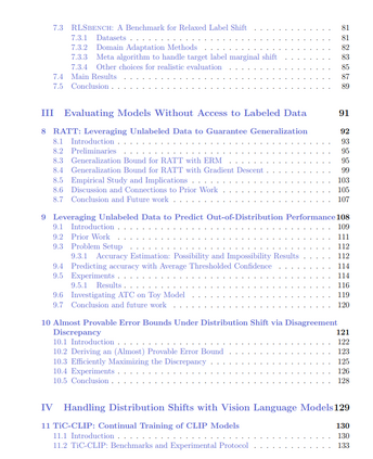 总体而言,本论文通过开发利用未标注数据在分布变化下适应和评估模型的技术,拓展了稳健机器学习的前沿。这里展示的工作是朝着在分布变化面前开发稳健机器学习全面工具包迈出的一步。