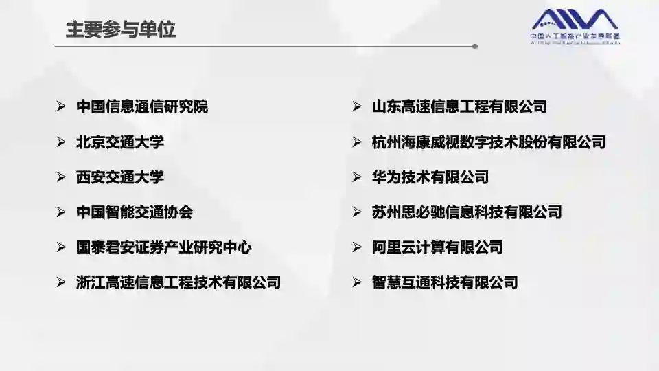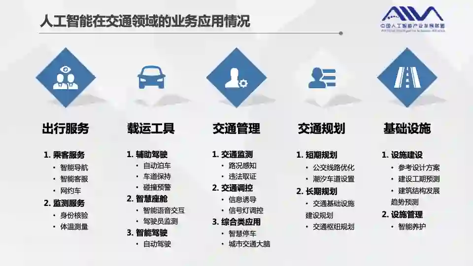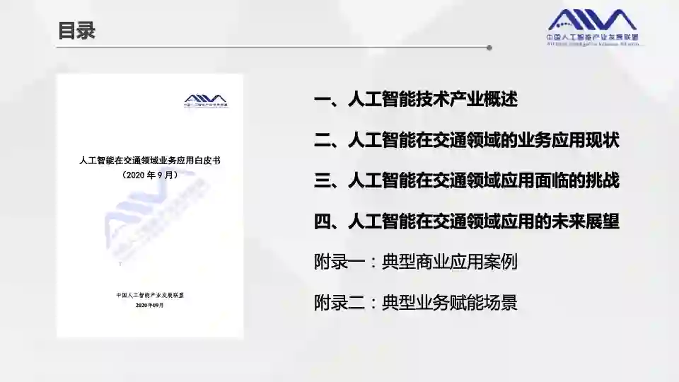本报告以人工智能对交通业务的赋能为切入点,系统梳理人工智能在交通领域的技术现状、典型应用、产业生态,总结业务发展面临的挑战,展望未来发展的趋势,并附上当前典型的应用案例和赋能场景,为进一步推进人工智能和交通行业的深度融合提供参考。
