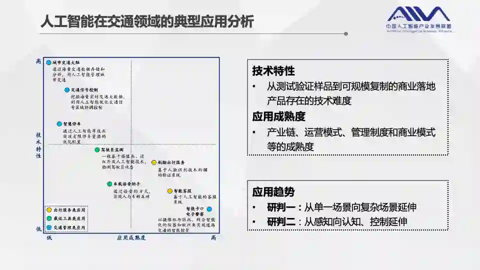 (一)人工智能在交通领域应用的产业环境趋好 (二)人工智能在交通领域应用现状 (三)人工智能在交通领域典型应用及产业分析 三、人工智能在交通领域应用面临的挑战