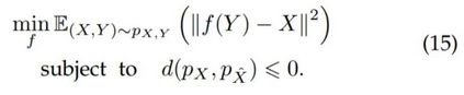 其中,可以发现问题(7)是上述最优传输问题的一种实现。 看似准则(7)违背直觉,因为它将重建目标推向了带噪输入,但是深入分析后会发现,该问题旨在寻找一个满足以下条件的重建映射 :