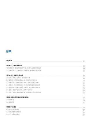 人工智能算力的增长为人工智能的持续创新发展提供支撑。宏观层面,人工智能算力为国家创新力的发展带来实质性推进,不仅在应用科学的突破上发挥了重要作用,也开始渗透到基础科学领域,极大提高了科学研究的效率和科学发展的进程。 《报告》指出,人工智能应用正在从单点技术到多种技术能力融合方向发展、从事后分析向事前预判和主动执行方向发展、从计算智能和感知智能向认知智能和决策智能方向发展,创新应用场景逐步增多。 未来五年,随着人机交互、机器学习、计算机视觉、语音识别技术的成熟,人工智能将在企业市场中加快应用与落地,智能算力将成为未来创新的核心推动力。 具体内容如下