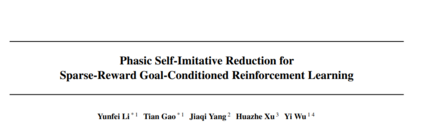 利用监督学习(SL)的力量开发更有效的强化学习(RL)方法已经成为最近的一种趋势。为了解决稀疏奖励目标条件问题**,我们提出了一种新的分阶段方法,即在线反馈学习和离线反馈学习交替进行**。在在线阶段,我们执行RL训练并收集上线数据,而在离线阶段,我们对数据集中成功的轨迹执行SL。为了进一步提高样本效率,我们在在线阶段采用了额外的技术,包括减少任务生成更可行的轨迹和基于价值差异的内在奖励来缓解稀疏奖励问题。我们称这种整体算法为PhAsic自拟约简(PAIR)。在稀疏奖励目标条件机器人控制问题(包括具有挑战性的堆叠任务)上,PAIR大大优于非相位RL和相位SL基线。PAIR是第一个RL方法,它学习了从零开始堆叠6个立方体,只有0/1的成功奖励。