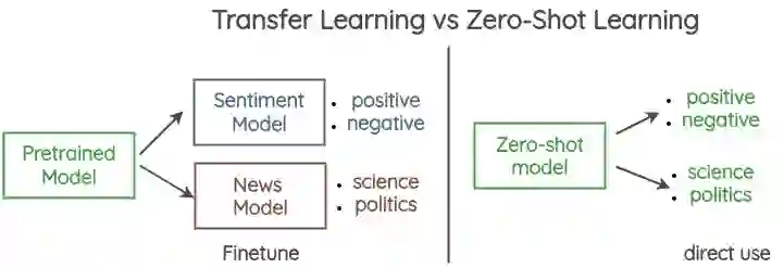 例如,我们想要做情感分类和新闻分类。通常,我们将为每个数据集训练/微调一个新模型。相比之下,零样本学习,你可以直接执行任务,如情绪和新闻分类,没有任何特定的任务训练。