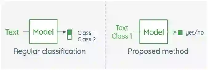 本文提出了一种简单的零样本分类方法。他们没有将文本分类为X类,而是将任务重新组织为二元分类,以确定文本和类是否相关。