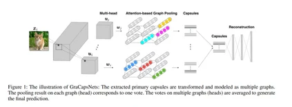 胶囊网络(Capsule Networks),作为卷积神经网络的替代品,已被提出用于从图像中识别物体。目前的文献证明了CapsNets相对于CNN的许多优势。然而,如何为CapsNets的各个分类建立解释还没有被探索清晰。目前,广泛使用的显著性方法主要是为了解释基于CNN的分类而提出的,它们通过结合激活值和相应梯度来创建显著性图解释,例如Grad-CAM。这些显著性方法需要底层分类器的特定架构,由于CapsNets的迭代路由机制,它们无法平凡地应用于其中。为了克服可解释性的不足,作者认为可以为CapsNets提出新的事后解释方法,或修改模型,使其具有内置的解释。在这项工作中,作者主要研究后者。具体来说,作者提出了可解释的Graph Capsule Networks(GraCapsNets),用基于多头关注的Graph Pooling方法替换了路由部分。该模型能够有效且高效地创建单个分类的解释。同时,尽管取代了CapsNets的基本部分,该模型还展示了一些意想不到的好处。与CapsNets相比,GraCapsNets以更少的参数实现了更好的分类性能,并且具有更好的对抗性鲁棒性。此外,GraCapsNets还保留了CapsNets的其他优点,即分离式表征示(disentangled representations)和仿射变换鲁棒性(affine transformation robustness)。