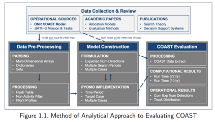 本论文是与美国海军研究实验室(U.S. Naval Research Laboratory)密切合作完成的,该实验室是美国海军的企业研究实验室,也是海军研究办公室下属的主要研发部门。NRL 对 SAP 的回应是行动方案模拟工具 (COAST),这是一个建模框架,可解决众多规划因素和决策支持系统,从而提高规划人员分配资源的能力。COAST 使用启发式方法来决定将哪些单元分配给搜索飞机。我们提供了一个用于评估 COAST 建议质量的验证工具。