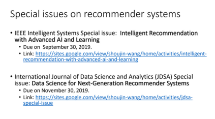 经典的RSs是建立在相关数据(如评分或内容)是独立同分布(IID)的假设上的,而IID存在许多问题,如冷启动和数据稀疏。因此,许多最先进的RSs都通过整合不同的信息来增强机器学习技术。本教程将分析高级推荐问题中的数据、挑战和业务需求,并从非独立同分布的角度介绍机器学习的最新进展,从而为下一代RSs建模。这包括总体的RS进化和推荐中的非独立同分布性,社会RS的高级机器学习,基于分组的RS,基于会话的RS,跨域RS,上下文感知RS,多模态RS,多标准RS,在用户、项目、上下文、模式和标准之间的模型各种耦合方面。