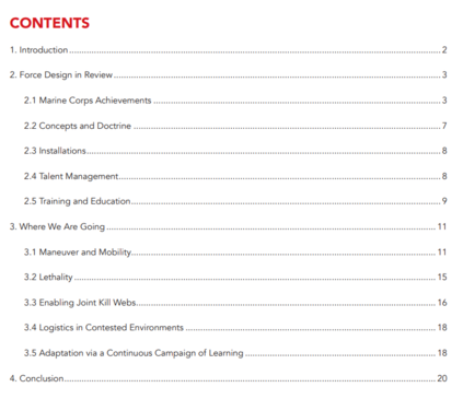 本次更新说明了在兵力设计方面的现状以及未来的方向。强调了在编成、能力和概念方面取得的进展,同时承认现代化是一个持续完善的过程。兵力设计仍是海军陆战队的战略优先事项,须继续加速推进。