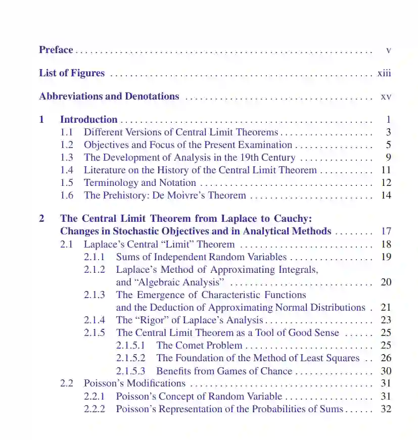 这项研究讨论了大约从1810年到1950年中央极限定理及相关概率极限定理的历史。在这方面,本书还描述了解析概率论及其工具(如特征函数或矩)的历史发展。中央极限定理最初由拉普拉斯推导出,作为关于独立随机变量之和的分布的近似在古典概率框架下的一个声明,这一框架侧重于特定的问题和应用。 使这个定理成为一个自主的数学对象对现代概率论的发展非常重要。