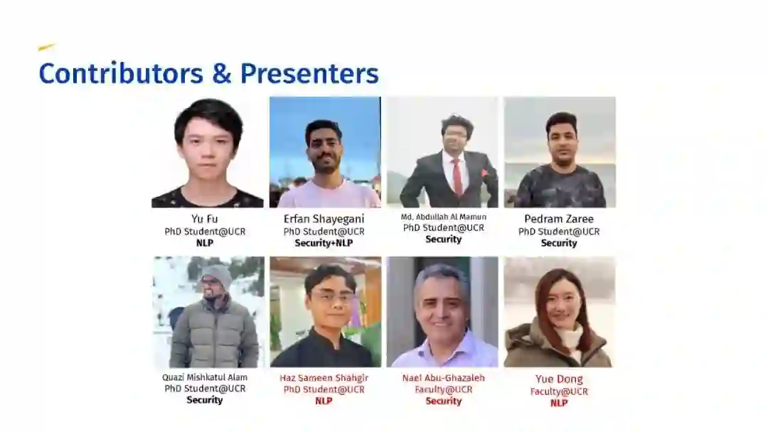 本教程全面概述了大型语言模型(LLMs)在对抗攻击下暴露的脆弱性——这是一个可信机器学习中新兴的跨学科领域,结合了自然语言处理(NLP)和网络安全的视角。我们强调了单模态LLM、多模态LLM以及集成LLM的系统中现有的脆弱性,重点关注旨在利用这些弱点并误导AI系统的对抗攻击。 研究人员一直在通过将模型与预期原则对齐来应对这些安全问题,采用了如指令微调和通过人类反馈进行强化学习等技术。理想情况下,这些对齐的LLM应该是有帮助且无害的。然而,过去的研究表明,即使是那些经过安全训练的模型也可能受到对抗攻击的影响,例如在ChatGPT或Bard等模型上频繁出现的“越狱”攻击就证明了这一点。 本教程概述了大型语言模型,并描述了它们是如何进行安全对齐的。随后,我们根据不同的学习结构组织现有研究,涵盖了文本攻击、多模态攻击以及其他攻击方法。最后,我们分享了对脆弱性潜在原因的见解,并提出了可能的防御策略。