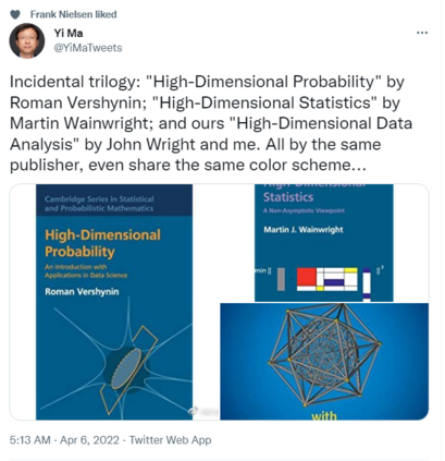 【导读】大数据的爆发式增长,催生了对高维数据分析的需求。围绕高维机器学习,有三部经典书籍包括加州大学欧文分校Roman Vershynin教授的《高维概率论》、伯克利Martin Wainwright教授《高维统计学》、哥伦比亚大学John Wright教授与伯克利马毅教授《高维数据分析》,非常值得收藏!