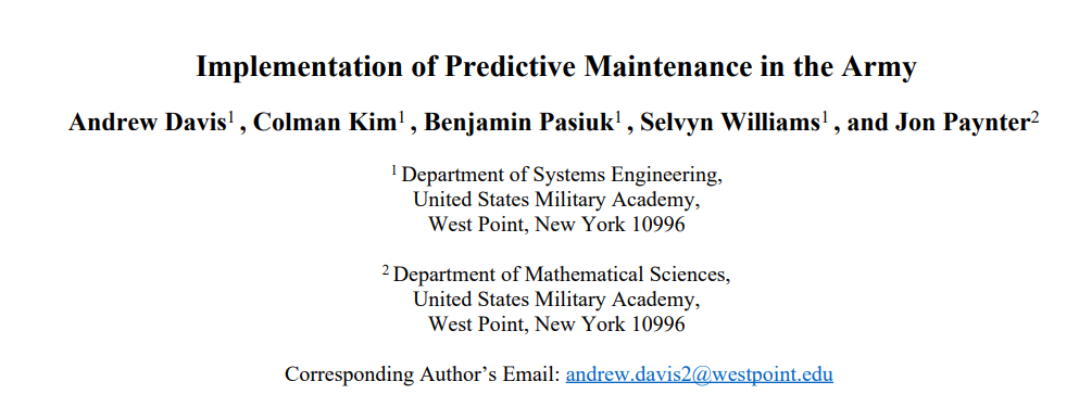 随着人工智能(AI)在商业领域和军事领域的应用日益广泛,陆军也在积极探索如何将预测因素融入现有的维护周期,通过预测性维护提高效率。预测性维护是一种主动维护技术,它利用实时资产数据(通过传感器收集)、历史性能数据和高级分析来预测资产故障发生的时间。预测性维护是一种新的维护方法,它结合了新技术和人工智能来帮助监控系统和平台。在当前的维护流程中实施人工智能和基于机器学习的预测器,有可能对陆军的战备状态产生积极影响,并通过改进往往导致过早或延迟维护行动的传统策略,使陆军能够更有效地运作。在最近一篇关于军事领域预测性维护的系统文献综述中,Dalzochio 讨论了用于预测功能的不同类型的模型,包括机器学习模型、深度学习模型、概率模型、混合模型、合理模型和基于物理的模型。为了解决军事领域的预测性维护问题,顶点小组采用了系统方法来解决这个问题: “陆军如何确定哪些平台沙组件最能从预测性维护模型中获益?” 在回答这个问题时,顶点小组深入研究了陆军内部现有的维护实践、预测性维护的现状、与实施预测性维护相关的挑战及其潜在影响。鉴于陆军装备的种类繁多、应用各异,提供了全面的文献综述、开发了模型、进行了利益相关者分析并评估了风险,从而为美国陆军人工智能集成中心(AI2C)开发人工智能和基于机器的预测器提供了价值。本文概述了预测性维护的背景、确定了方法、展示了预测性维护应用的模型,并提供了模拟模型的初步发现。