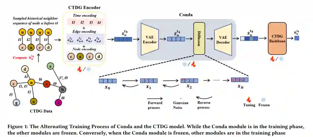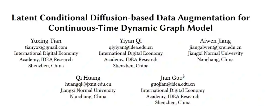 连续时间动态图(CTDG)能够精确地模拟现实世界中不断演变的关系,因此在学术界和工业界引起了对动态图学习的高度兴趣。然而,现有的CTDG模型面临由噪声和有限的历史数据引起的挑战。图数据增强(GDA)作为一种关键解决方案浮现出来,但目前的方法主要关注静态图,难以有效应对CTDG固有的动态性。此外,这些方法通常需要大量的领域专业知识进行参数调整,并且缺乏增强效果的理论保证。为了解决这些问题,我们提出了Conda,一种针对CTDG量身定制的新型潜在扩散基GDA方法。Conda采用类似三明治的架构,结合了变分自编码器(VAE)和条件扩散模型,旨在为目标节点生成增强的历史邻居嵌入。与通过预训练在整个图上训练的传统扩散模型不同,Conda需要目标节点的历史邻居序列嵌入进行训练,从而实现更有针对性的增强。我们将Conda整合到CTDG模型中,并采用交替训练策略来优化性能。在六个广泛使用的实际数据集上的广泛实验表明,我们的方法在有限历史数据的情况下特别能够显著提高性能表现。