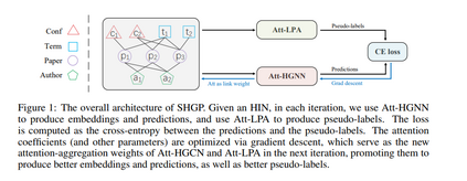 近年来,基于异构信息网络(HINs)的自监督预训练方法与传统的半监督异构图神经网络(HGNNs)相比显示出了良好的竞争力。不幸的是,它们的性能严重依赖于精心定制各种策略,以生成高质量的正例和反例,这明显限制了它们的灵活性和泛化能力。在这项工作中,我们提出了一种新的自监督异构图预训练方法SHGP,它不需要生成任何正例或负例。它由两个共享相同注意力聚合方案的模块组成。在每次迭代中,Att-LPA模块通过结构聚类产生伪标签,这些伪标签作为自我监督信号,指导Att-HGNN模块学习对象嵌入和注意系数。这两个模块可以有效地相互利用和增强,促进模型学习判别嵌入。在四个真实数据集上的大量实验证明了SHGP对最先进的无监督基线甚至半监督基线的优越有效性。我们在https://github.com/kepsail/SHGP发布源代码。