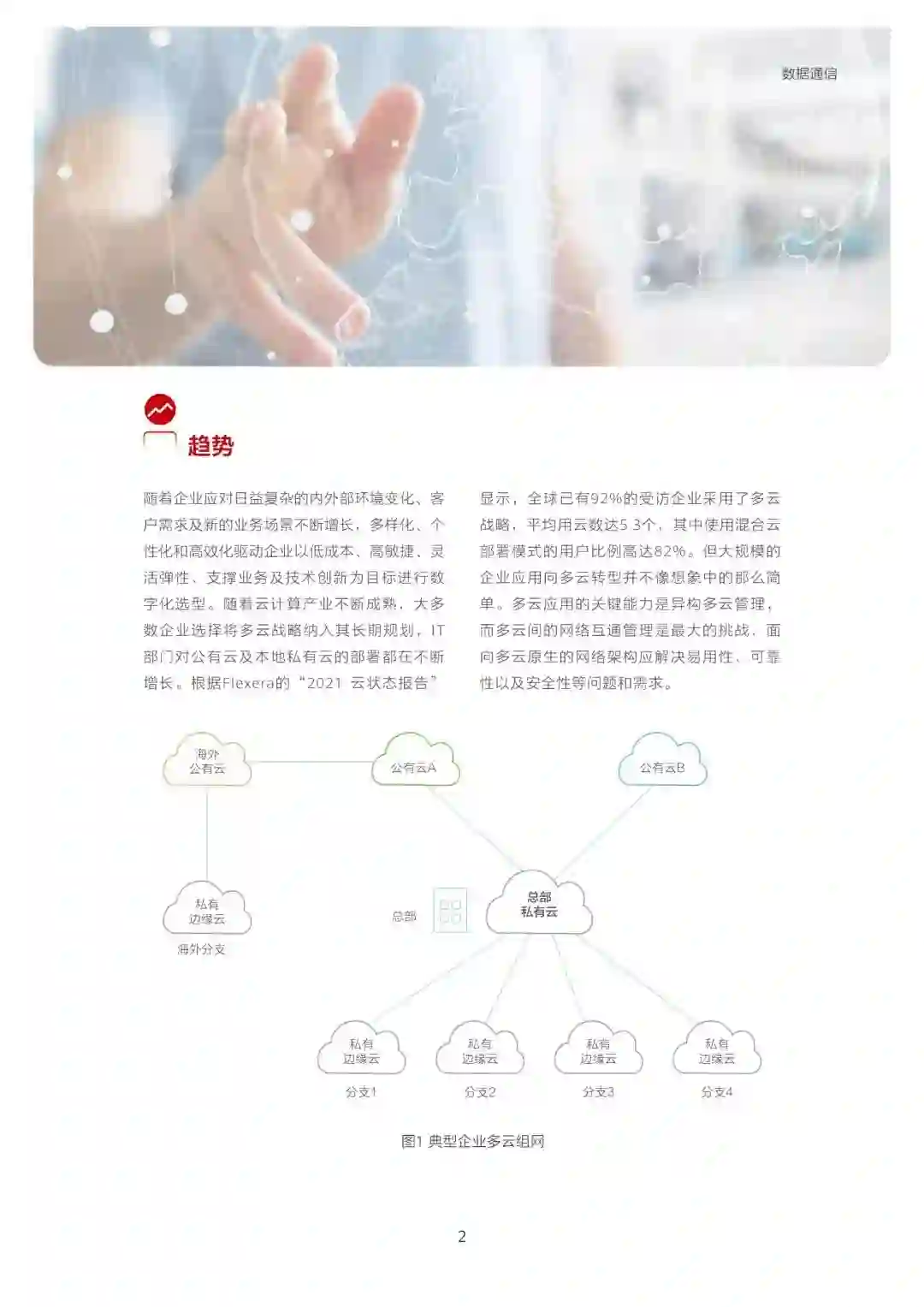 1.多云化成为企业共识:多云架构集成了私有云和多个公有云。多云使得企业可以根据不同时空的业务和安全需求灵活分配托管策略,从而充分利用多云的规模经济、灵活性、可扩展性等特点,实现降本增效;