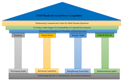 为在日益激烈的全球环境中保持战略主导地位,美空军拟采纳一项基于四大核心支柱的变革性战略:培养人员以生成战备状态、提升能力以投送力量、加强伙伴关系以拓展战略纵深,以及将敏捷性制度化以持续适应和创新。这些支柱共同确保美空军保持威慑态势,并在必要时面对近似同级对手获胜。这一全面方法应对现代战争的多方面挑战,能够有效预测并反击新兴威胁。