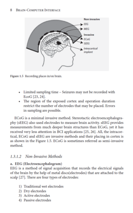 脑机接口涵盖了深度学习脑机接口的所有研究前景和最新进展。脑机接口(brain-computer interface, BCI)是一种向实用化方向发展的新兴技术。目的是通过电子设备的体验,建立一个连接大脑内人类神经网络与外部世界的通信通道。例如,为无法控制自己身体的锁定患者创建通信或控制应用程序将是一种用途。最近,从通信到市场营销、康复、护理、精神状态监测和娱乐,可能的应用领域一直在扩大。机器学习算法在过去的几十年里先进了BCI技术,在分类精度意义上,性能标准得到了很大的提高。然而,为了使BCI在现实世界中发挥作用,仍有一些问题有待解决。围绕深度学习的研究有望带来这方面的解决方案。深度学习已经被应用于各种领域,如计算机视觉和自然语言处理,以及BCI的增长,表现优于传统的机器学习方法。因此,大量研究人员对工程、技术和其他行业的深度学习表现出兴趣;卷积神经网络(CNN)、循环神经网络(RNN)和生成对抗网络(GAN)。