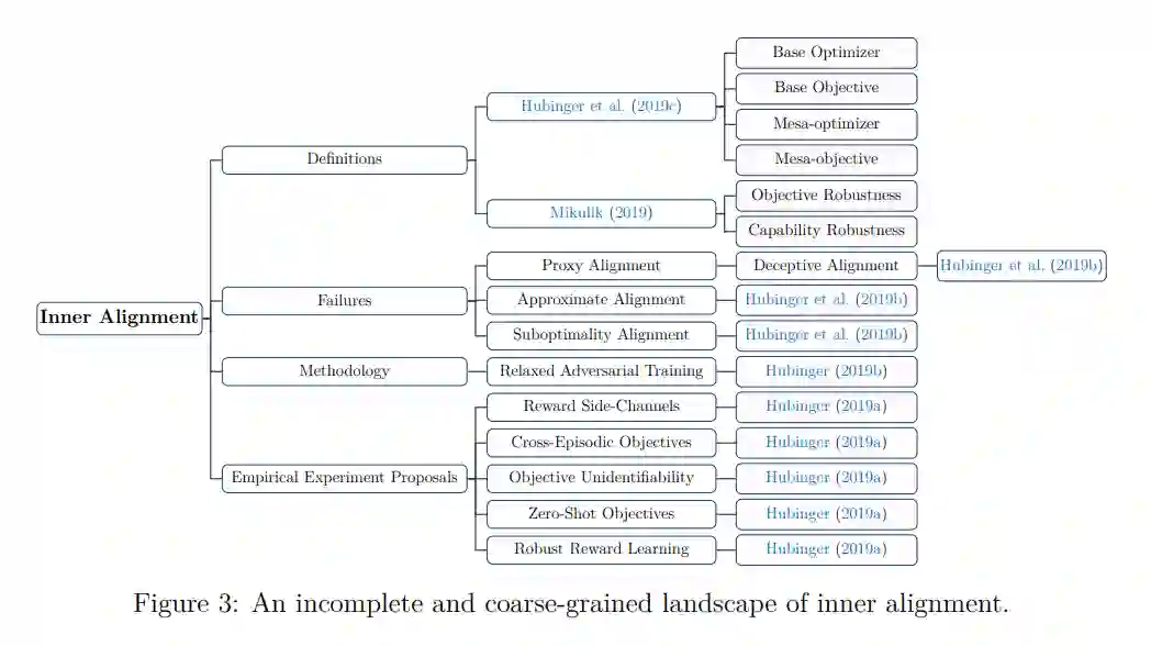 众所周知,从广泛的角度来看,AI对齐的关键研究议程包括外部对齐、内部对齐和可解释性(Hubinger, 2020b; Ngo, 2022; Krakovna, 2022)。