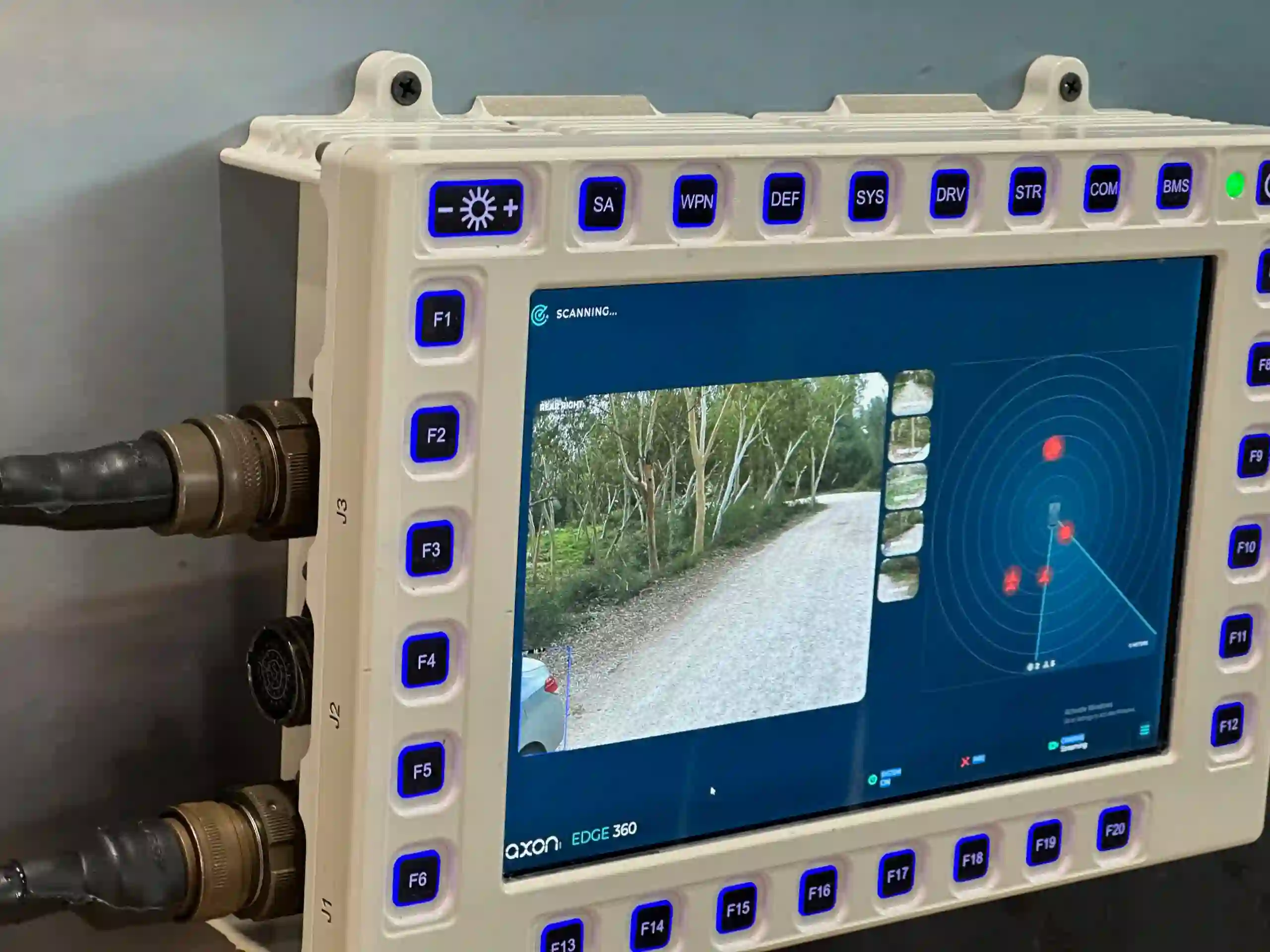 图:这个小巧的集成屏幕显示Axon Vision公司的Edge360人工智能增强态势图,该态势图由六个外围摄像机画面组成,经过人工智能处理,可向机组人员发出敌军警报,显示最关键威胁的位置、方向和范围。 图片来源:Tamir Eshel