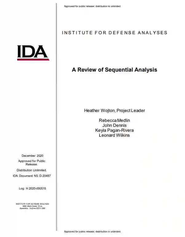 序列分析涉及统计评估,在这种情况下,数据的数量、模式或组成并不是在调查开始时就确定的,而是取决于在整个调查过程中获得的信息。尽管序列分析的正式起源于二战期间美国防部的弹道测试(Wald,1945;Wallis,1980),但我们发现它在最近的美国防部测试中使用不足。扩大序列分析的使用范围,有可能节省大量的资金并减少测试时间(国家研究委员会,1998)。本文总结了关于序列分析的文献,并为提供美国防部测试和评估中使用序列分析的建议提供了基本信息。