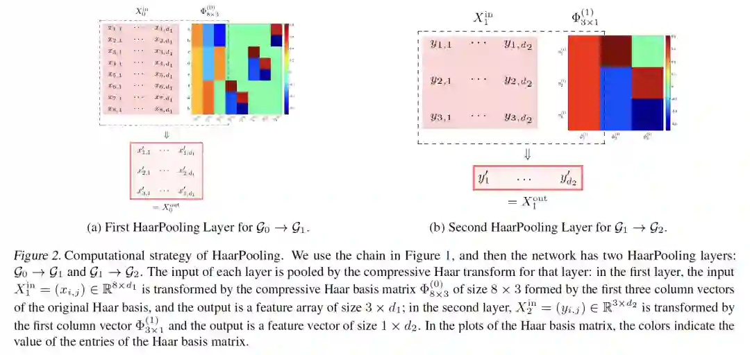 摘要:深度图神经网络(GNNs)是用于图分类和基于图的回归任务的有效模型。在这些任务中,图池化是GNN适应不同大小和结构的输入图的关键因素。本文提出了一种新的基于压缩Haar变换的图池化操作-HaarPooling。HaarPooling实现了一系列池化操作;它是通过跟随输入图的一系列聚类序列来计算的。HaarPooling层将给定的输入图变换为节点数较小、特征维数相同的输出图;压缩Haar变换在Haar小波域中过滤出细节信息。通过这种方式,所有HaarPooling层一起将任何给定输入图的特征合成为大小一致的特征向量。这种变换提供了数据的稀疏表征,并保留了输入图的结构信息。使用标准图卷积层和HaarPooling层实现的GNN在各种图分类和回归问题上实现了最先进的性能。