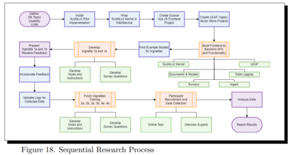 本研究评估了12名参与者使用Stitch的表现。该定制化网络工具支持创建系统工程建模语言第二版(SysMLv2)模型并与虚拟智能体交互。采用混合研究方法结合遥测数据与问卷调查,通过四组任务情景对组(学员与专业人员各半)构建测试框架:受试者根据源文档构建SysMLv2模型并分析模型要素。该流程平衡传统文件浏览模式与虚拟智能体辅助功能,并采用双重视觉样式设计。遥测数据与问卷反馈共同揭示工具可用性及虚拟智能体效能,结果表明不同群体内部及群体间存在显著的性能与可用性差异。尽管Stitch展现出可用性且虚拟智能体有效支持建模,但参与者普遍期待增强建模辅助功能。