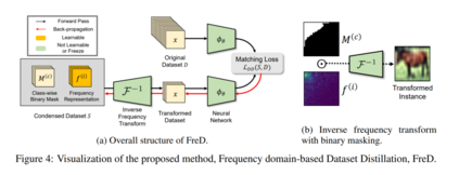 这篇论文介绍了 FreD,一种新型的数据集提炼参数化方法,该方法利用频率域从大型原始数据集中提炼出小型合成数据集。不同于传统聚焦于空间域的方法,FreD 采用基于频率的变换来优化每个数据实例的频率表示。通过利用空间域信息在特定频率分量上的集中,FreD 聪明地选择一部分频率维度进行优化,从而显著减少了合成实例所需的预算。通过基于解释方差的频率维度选择,FreD 展示了其在有限预算内高效操作的理论和实证证据,与传统的参数化方法相比,更好地保留了原始数据集的信息。此外,基于 FreD 与现有方法的正交兼容性,我们确认 FreD 在不同基准数据集的评估场景中,始终提高了现有提炼方法的性能。我们在 https://github.com/sdh0818/FreD 上发布了代码。