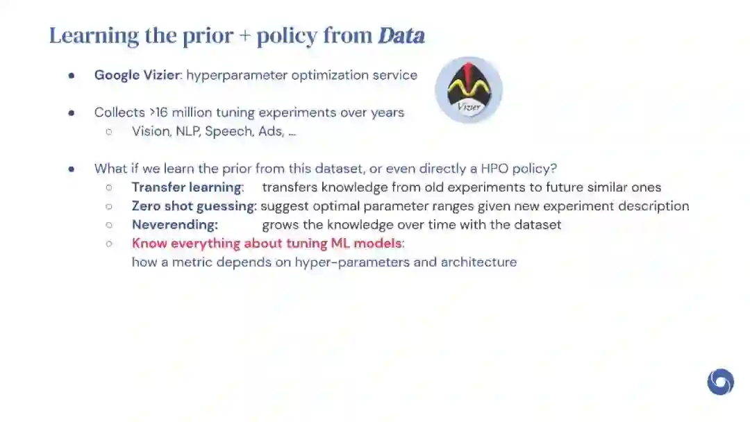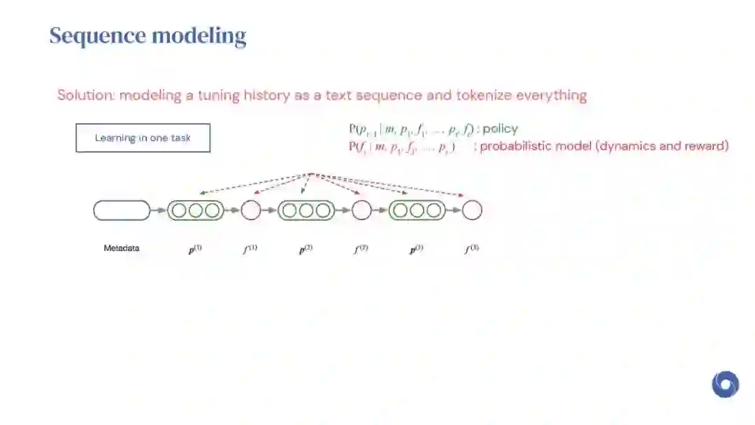 基于先验实验的元学习超参数优化(HPO)算法是提高分布相似目标函数优化效率的有效方法。然而,现有的方法仅限于从共享一组超参数的实验中学习。本文提出OptFormer,第一个基于文本的Transformer HPO框架,在对来自外界的大量调优数据进行训练时,提供了一个通用的端到端接口,用于联合学习策略和功能预测。实验结果表明,OptFormer可以模拟至少7种不同的HPO算法,这些算法可以通过其功能不确定性估计进一步改进。与高斯过程相比,OptFormer还学习了超参数响应函数的鲁棒先验分布,从而可以提供更准确和更好的校准预测。本文工作为未来将基于transformer的模型训练为通用HPO优化器铺平了道路。