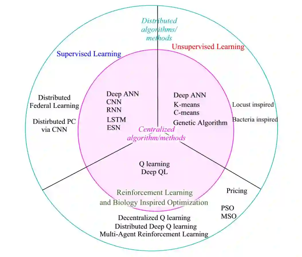 本文的其余部分组织如下:第 2 节提供了现代 ML 方法的基本术语,这些方法可能适用于改进无人机群的处理。第 3 节介绍了几项相关调查综述,这些调查考虑了无人机技术和用于无人机的 ML 方法,以及飞行自组织网络 (FANET) 环境。第 4 节考虑了与机群形成有关的相关研究。在第 5 节中,讨论了资源分配和功率控制的挑战,而第 6 节侧重于解决无人机群中任务分配的挑战性问题的研究。最后,第 7 节提出了一些结论和对未来工作的见解。