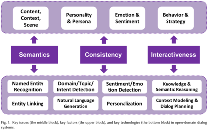 由于大量对话数据的可用性和人工智能对话的神经方法的最新进展,开发智能开放域对话系统的兴趣正在复苏。与传统的面向任务的机器人不同,开放域对话系统旨在通过满足人类交流、情感和社会归属感的需求,与用户建立长期的联系。这篇文章回顾了最近关于神经方法的工作,致力于解决在开发这样的系统中的三个挑战:语义,一致性和交互性。语义要求对话系统不仅要理解对话的内容,还要识别用户在对话过程中的情感和社会需求。一致性要求系统表现出一致的个性,以赢得用户的信任,获得用户的长期信心。互动性是指系统产生人际反应以实现特定社会目标的能力,如娱乐、一致性和任务完成。我们在这次调查中选择的研究是基于我们独特的观点,并不是完全的。尽管如此,我们希望讨论将会给开发更智能的开放域对话系统的新研究带来灵感。