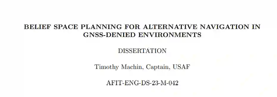 虽然许多规划算法都展示了对单一非全球导航卫星系统测量过程的使用,但还没有一种算法展示了对多个传感域和替代导航(alt-nav)技术的使用,以提供通过有争议环境的稳健导航计划。本文包括开发一种基于采样的信念空间规划(BSP)算法,该算法考虑到了多种替代导航测量技术,命名为快速探索随机信念替代导航图(RRBANG)算法。这项研究填补了规划研究与 Alt-nav 研究之间的空白,充分利用了两者的优势,根据智能体的各种感知能力,为到达目的地制定了稳健的计划。