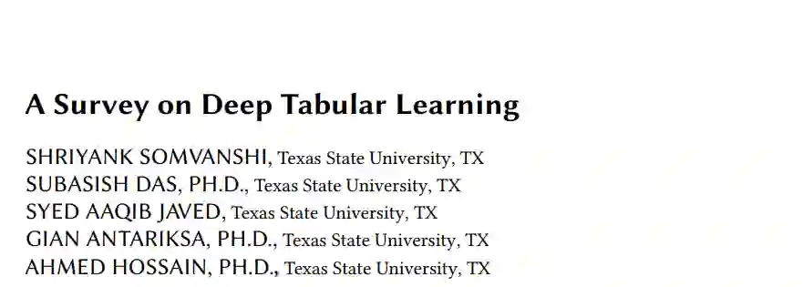 表格数据广泛应用于医疗、金融、交通等行业,但由于其异构性和缺乏空间结构的特性,给深度学习带来了独特的挑战。本综述回顾了用于表格数据的深度学习模型的演变,从早期的全连接网络(FCN)到先进的架构,如TabNet、SAINT、TabTranSELU和MambaNet。这些模型结合了注意力机制、特征嵌入和混合架构,以应对表格数据的复杂性。TabNet通过顺序注意力机制进行逐实例的特征选择,提高了模型的可解释性;而SAINT结合了自注意力机制和样本间注意力机制,捕捉特征和数据点之间的复杂交互,从而在提高可扩展性的同时减少计算开销。混合架构如TabTransformer和FT-Transformer将注意力机制与多层感知机(MLP)结合,处理类别和数值数据,其中FT-Transformer专门为表格数据集调整了Transformer模型。研究仍在继续,以在大规模数据集上平衡性能和效率。基于图的模型如GNN4TDL和GANDALF结合了神经网络与决策树或图结构,通过先进的正则化技术增强了特征表示,并在小数据集上缓解了过拟合问题。基于扩散的模型如表格去噪扩散概率模型(TabDDPM)通过生成合成数据解决数据稀缺问题,从而提高模型的鲁棒性。同样,TabPFN和Ptab等模型利用了预训练语言模型,将迁移学习和自监督技术引入表格任务。本综述重点介绍了这些领域的关键进展,并概述了在多样化的表格数据应用中关于可扩展性、泛化性和可解释性的未来研究方向。