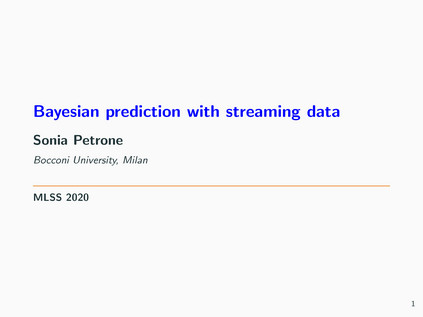 机器学习暑期学校(MLSS)系列开始于2002年,致力于传播统计机器学习和推理的现代方法。今年因新冠疫情在线举行,从6月28号到7月10号讲述了众多机器学习主题。本文推荐来自米兰Sonia Petrone教授讲述《流数据贝叶斯预测》,177页ppt系统性讲述了贝叶斯预测,非常干货。