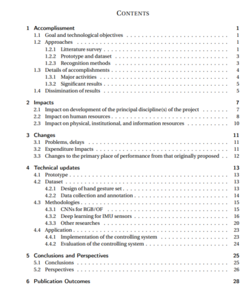 近年来,手势识别(HGR)已经取得了巨大的成功,并在人机交互领域开辟了一个新的趋势。然而,一些现有的手势识别系统在实际应用中的部署仍然遇到一些挑战,如传感器的可测量范围有限;由于使用单一的模式,缺乏重要的信息;由于复杂的深度模型的训练,通信成本高,延迟和隐私负担。本项目旨在克服这些主要问题,通过开发边缘智能技术,使用可穿戴多模态传感器(如加速度计和摄像头)进行手势识别,并减少注释工作。在这个项目中,我们设计了一个可穿戴式多模态原型,能够捕捉多模态信息,如RGB和运动数据。然后我们设计了一套在人机交互中常用的12种动态手势。我们使用所设计的原型在不同的环境条件下对50名受试者收集了此类手势的数据集。据我们所知,这个数据集可以被认为是研究界从腕戴式多模态传感器识别手势的第一个基准数据集。我们部署了各种最先进的CNN模型,对使用RGB和运动数据的手势识别进行了比较研究。实验结果显示了该基准的挑战,以及现有模型的最佳性能和未来的改进空间。此外,在该项目框架内,我们改进了带有时间信息的手部姿势估计和连续手势识别的算法。我们还对用于时间序列预测的混合CNN-LSTM模型中的形状分析和贝叶斯推理进行了基础研究。我们引入了一个框架,便于研究联邦学习。该原型和研究成果已在12个国际会议上发表,并提交给一个IEEE传感器杂志。