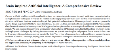 人工智能(AI)的一个基本目标是创造能够像人类一样学习和思考的机器。为了实现这一目标,人工学习器在多个领域中取得了显著的里程碑,包括目标和语音识别【131, 151】、图像处理【115】、机器人技术【50】、医学数据分析【161】、自然语言处理(NLP)【114】等。这些成功加速了AI的发展,使其在某些领域能够与人类匹敌甚至超越。例如,AI模型现在在某些特定任务中表现优于人类,如语言翻译【134】、图像识别【63】甚至战略游戏如国际象棋和围棋【155】。最近,许多公司提出了一系列能够理解图像、音频、视频和文本的多模态模型,其能力类似于人类【3, 7, 169】。这种快速的进步彰显了AI在各个领域中的变革潜力,推动了技术能实现的边界。然而,旨在创造具有类似人类思维和推理能力的机器的一般AI方法在可扩展性、鲁棒性、能效、可解释性、学习效率和适应性方面仍然存在局限性【98】。 人类大脑被认为是最复杂的信息处理系统,能够解决诸如学习、推理和感知等复杂任务。基于对人脑研究的最新进展,研究人员正在将神经科学的见解整合到AI系统中,旨在开发能够更接近人类行为的感知、推理和行动的脑启发人工智能(BIAI)系统【128, 163】。这一努力源于对生物智能的基本原理的理解,并希望利用这些原理来构建更智能、适应性更强和更鲁棒的AI系统。什么是脑启发人工智能(BIAI)?BIAI指的是从人类大脑和神经系统的生物结构、功能和原理中获得灵感的AI系统和算法。它专注于复制或模仿生物体中观察到的复杂过程和功能,以在人工系统中实现更类似于人类或大脑的行为【197】。与一般AI算法相比,BIAI通常集中于人类行为的特定方面,如从经验中学习、适应新环境以及关注重要信息。在这篇全面综述中,BIAI文献大致分为物理结构(PS)启发型模型和人类行为(HB)启发型模型。PS启发型模型是指模仿生物神经元、突触和神经回路结构的模型,用于执行诸如学习、推理和决策等任务。代表性模型包括多层感知器(MLP)、人工神经网络(ANNs)以及最近的脉冲神经网络(SNNs)。HB启发型模型被定义为复制人类行为中观察到的生物机制和过程的模型。这些模型旨在捕捉生物系统的动态,同时提供对人类如何感知、学习、适应和与环境互动的见解。注意力机制、迁移学习和强化学习是常见的人类行为启发的深度学习方法。BIAI与一般AI的区别在于它们在AI领域中的不同方法和目标【31, 77】。具体而言,一般AI并不一定受到人类大脑具体工作方式的启发,而是旨在更广泛的意义上达到或甚至超越人类水平的智能。相反,设计BIAI系统的目的是复制或模仿人类认知背后的生物机制和过程。这些系统通常在图像识别和机器人控制等任务中表现出色,但它们可能不具备人类智能的全方位能力。BIAI与传统AI的更全面比较见表1。为什么BIAI重要?BIAI的重要性主要体现在两个方面。一方面,BIAI在适应性、泛化能力和可解释性等许多方面有潜力超越传统的AI方法。另一方面,BIAI模型旨在模仿大脑的结构和功能,从而增加其生物学的合理性。这种与生物学原理的契合不仅加深了我们对智能的科学理解,也为神经科学和AI研究之间的合作创造了新的机会。本质上,通过从人类大脑——最先进的信息处理系统——中汲取灵感,研究人员正在为开发可能达到甚至超越人类能力的智能系统奠定基础【47, 103, 125】。
