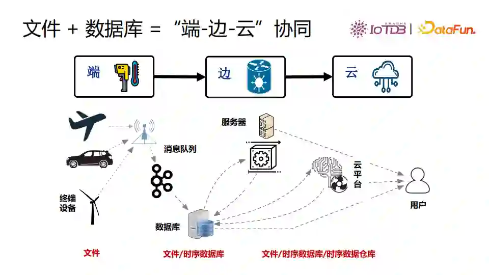 IoTDB产品形态分为三部分: ① 部署在嵌入式终端设备的时序“数据文件”