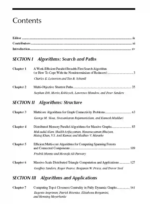 本书面向学术界、国家实验室和工业界的学生、研究人员和实践者,他们希望了解大规模图分析中最先进的算法、模型、框架和软件。这本书包含了大规模图分析领域的主要作者的章节的全面集合。这些章节分为五个部分:第一部分:算法:搜索和路径(第1-2章),第二部分:算法:结构(第3-6章),第三部分:算法和应用(第7-11章),第四部分:模型(第12-14章),第五部分:框架和软件(第15-20章)。
