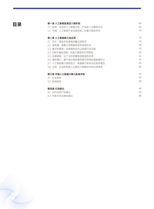 大模型和AIGC的发展提升了智能算力需求,给计算市场带来了发展机遇,同时也带来了算力紧缺等挑战。对此,《报告》认为,面对单芯片算力瓶颈、算力紧缺等问题,中国市场对于智能算力供给能力的衡量标准将发生变化——评估指标将从硬件性能向应用效果转变,用户在获得算力服务的过程中,会更加以应用为导向进行综合考量,增加对于诸如单位时间可处理Token数量、可靠性、时延、训练时间和资金成本、数据集质量等指标的关注。 针对这一转变,《报告》指出,算力供应商需要“以应用为导向、系统为核心”,构建算力基础设施平台,提高算力利用率,提升诸如卡间互联、多节点间互联等水平,支持灵活稳定扩展和弹性容错,积极打造通用的人工智能软件和硬件平台,以先进的系统性能力满足市场的应用需求。也就是说,与其过分关注单一芯片的性能强弱,不如根据人工智能业务场景需求,设计更具针对性的算力系统,实现整体性能最优。 具体内容如下: