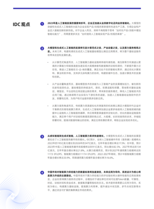 2023年,由ChatGPT引爆的新一轮人工智能热潮,开启了由大模型驱动的AIGC时代。IDC调研显示,67%的中国企业已经开始探索AIGC在企业内的应用机会或已经开始进行资金投入。 中国企业对生成式人工智能的态度 《报告》指出,当前在AIGC的带动下,人工智能计算力技术及应用趋势发生了较大的变化,体现为“三变: 一是计算范式之变。大模型和AIGC的发展加速了更高计算性能、更快互联性能的算力基础设施建设,推进人工智能在云-边-端的覆盖。此外,伴随应用场景多样性,底层基础设施呈现多元化发展。 二是产业动量之变。AIGC可重构现有的工作方式,在内容创作、自动驾驶、零售、医疗等诸多领域改变着人们的生活和生产方式,同时也带来更大的市场机会。算力、算法、应用、服务等诸多产业变量将成为创新的加速器,在算力生态链上的各个环节催生出新的玩家。 三是算力服务格局之变。由于基础大模型的本地训练成本不菲,企业将更多地使用已有的人工智能数据中心设施和生成式AI服务器集群,这将为算力服务市场带来新机会。算力服务供应商要能够提供定制化的基础设施服务能力,满足单个用户对训练和推理资源的独占式、大规模、长时间使用的诉求,同时帮助用户实现成本控制。 ** “以应用为导向、系统为核心”是算力升级新路径**