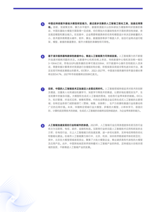 《报告》通过多年持续跟踪中国人工智能计算力发展状况发现,从行业看,人工智能从单点应用到多元化应用、从通用场景到行业特定场景正在不断深入,而AIGC在2023年快速发展,也在进一步赋能各行各业;从城市看,越来越多的城市参与到人工智能发展浪潮中,持续加大在相关领域的投资,不断推进人工智能产业的发展。 在2023年人工智能行业渗透度排名中,Top5的行业依次为互联网、电信、政府、金融和制造。此外,交通、服务、教育等行业在人工智能领域的投资力度也可圈可点。其中,互联网依然是AIGC技术应用和研发的主战场;电信行业排名从2022年的第四跃升至2023年的第二,主要归因于运营商紧跟国家东数西算战略,加速云数据中心、智算中心的建设。 在2023年中国人工智能城市排行榜中,北京、杭州、深圳继续保持前三名。其中,北京在大模型领域表现突出,聚集了大批大模型企业。此外,位居TOP10的城市还有上海,苏州,广州,济南,合肥、重庆和成都。整体来说,排名靠前的城市因具有更好的政策、资金和技术支持,可以稳定吸引更多的人才和企业聚集;智算中心的建设也是拉动地区实现人工智能发展的重要驱动力,既可以提升基础设施建设水平,也为吸引更多企业共谋发展起到积极的推动作用。 ** AIGC引发算力产业“三变”**
