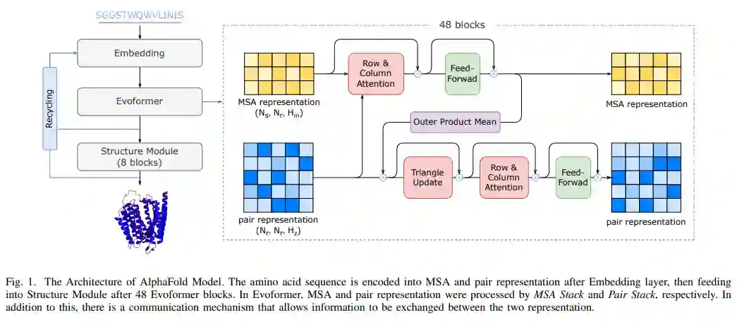 FastFold 蛋白质结构预测是结构生物学领域理解基因翻译和蛋白质功能的重要方法。AlphaFold 将 Transformer 模型引入了具有原子精度的蛋白质结构预测领域。然而,AlphaFold 模型的训练和推理由于其特殊的性能特点和巨大的内存消耗,既耗时又昂贵。在本文中,作者提出了 FastFold,这是一种用于训练和推理的蛋白质结构预测模型的高效实现。FastFold 包括一系列基于对 AlphaFold 性能的全面分析的 GPU 优化。同时,通过 Dynamic Axial Parallelism 和 Duality Async Operation,FastFold 实现了高模型并行缩放效率,超越现有流行的模型并行技术。实验结果表明,FastFold 将整体训练时间从 11 天减少到 67 小时,并实现了 7.5-9.5 倍的长序列推理加速。此外,我们将 FastFold 扩展到 512 个 GPU,并以 90.1% 的并行效率实现了总计 6.02 PetaFLOPs。