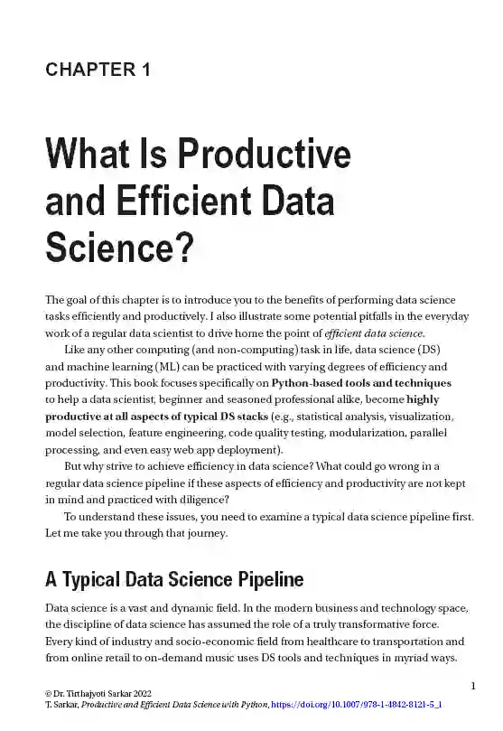 您将回顾日常业务流程中潜伏的低效率和瓶颈,并使用实际的解决方案来解决它们。重复数据科学任务的自动化是贯穿全书的一个关键思维模式。您将学习如何在Python生态系统中已经存在的高级库和包的帮助下扩展现有的编码实践,以高效地处理更大的数据集。
