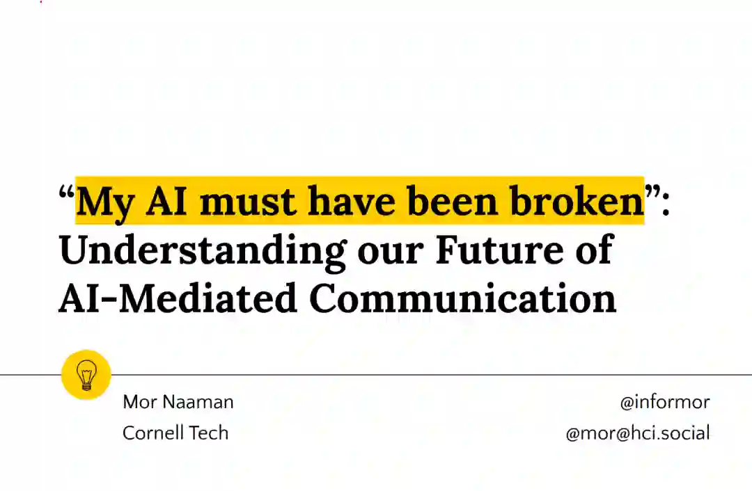 本次演讲将讨论AI-Mediated Communication (AI-MC)现象及其对人类沟通结果、语言使用和人际信任的潜在影响。作者概述了早期的实验结果,表明人工智能的参与可以改变书面内容和意见,改变消息所有权,影响责任分配,并影响信任评估,强调了开发和部署这些技术的新方法的必要性。