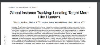 Shiyu Hu, Xin Zhao, Lianghua Huang, andKaiqi Huang. “Global Instance Tracking: Locating Target More Like Humans”, IEEETransactions on Pattern Analysis and Machine Intelligence (TPAMI), 2022.