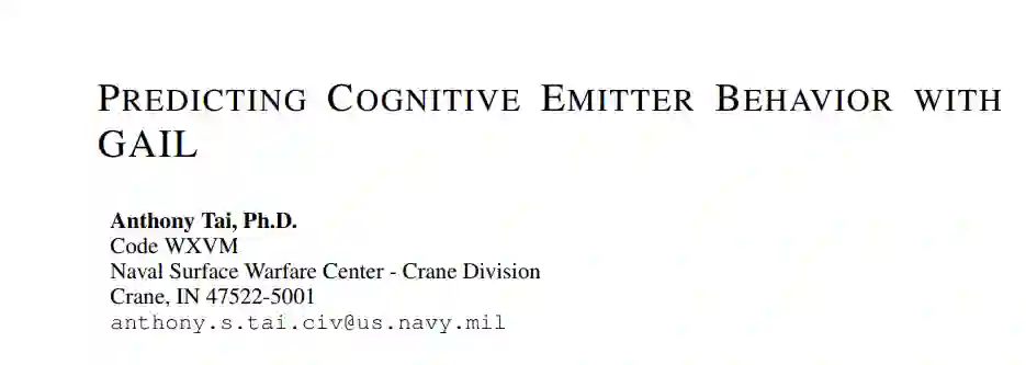 通过与周围环境的互动,现代认知雷达系统学会优化其决策过程,以智能地选择传输波形和操作参数。由于其波形的敏捷性和动态响应的能力,认知雷达很难被跟踪和破坏。这项工作旨在探索生成对抗性模仿学习(GAIL)是否可以应用于捕获、模仿和预测认知型雷达的行为。我们研究了GAIL的基本原理,探索了它的现有应用,并研究了该方法在跟踪自动驾驶汽车行动中的实施。最后,我们对利用GAIL来预测认知雷达系统的行为进行了可行性分析。