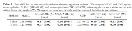 元学习已经成为一种很有前途的技术,它可以利用以前任务中的数据来高效地学习新任务。然而,大多数元学习算法都隐含地要求元训练任务是互斥的,这样就没有一个模型可以同时解决所有的任务。例如,在为少镜头图像分类创建任务时,先前的工作使用每个任务随机分配图像类到N-way分类标签。如果不这样做,元学习者可以忽略任务训练数据,学习一个模型来执行所有的元训练任务,但不能有效地适应新的图像类。这个需求意味着用户在设计任务时必须非常小心,例如通过打乱标签或从输入中删除任务标识信息。在某些领域,这使得元学习完全不适用。在这篇论文中,我们通过使用信息论设计一个元正则化目标来解决这一挑战,信息论优先考虑数据驱动的适应。这导致元学习者决定必须从任务训练数据中学习什么,以及应该从任务测试输入中推断什么。通过这样做,我们的算法可以成功地使用来自非互斥任务的数据来有效地适应新的任务。我们证明了它对上下文和基于梯度的元学习算法的适用性,并将其应用于实际环境中,在那里应用标准的元学习是困难的。在这些设置中,我们的方法大大优于标准的元学习算法。