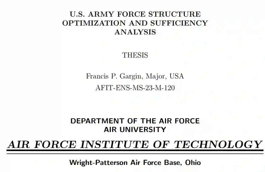 首先,本研究制定了一个整数编程模型,该模型可在所需时间段内,在遵守 ReARMM 部队规划准则的前提下,最大限度地减少按 MTOE、分队状态和指定地域 COCOM 位置排列所需的单元数量。其次,这项研究重点关注作战功能(WfF)的具体任务需求,并通过求解模型确定 WfF 所需的单元数量。然后,综合每个 WfF 实例的解法,得出满足任务需求所需的美国陆军总体兵力结构。该模型的每个实例都能达到最优解,其中最大、最复杂的任务需求集在 24.04 秒内就能达到最优解。还进行了敏感性分析,以评估改变特定参数的影响。此外,也许最重要的是,该模型的框架可用于对任何涉及分层劳动力属性的问题进行充分性分析,这些分层劳动力属性具有一组所需的工作需求,每组需求与一组首选的工人属性相关联。
