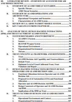 这篇论文将信任定义为操作者的态度,即AI-AMD决策辅助工具将有助于实现操作者的目标,即在一个以不确定性和脆弱性为特征的作战环境中迅速摧毁来袭威胁的任务。这种信任的定义表明,它是对操作者相信或感知AI-AMD决策辅助工具的一种情感评估。为了积极地影响信任,操作者必须亲自看到并感受到AI-AMD决策辅助行动的优势。AI-AMD行动涉及很多不确定因素,以及天气、电磁干扰和地形等环境因素以及不断变化的威胁的性质所带来的脆弱性。操作员将预期AI-AMD决策辅助系统按照 "合同 "执行,以处理这些不确定性和脆弱性。这些合同将是人工智能-AMD决策辅助工具应该执行的感知功能或任务,以及执行这些功能或任务的理想表现。